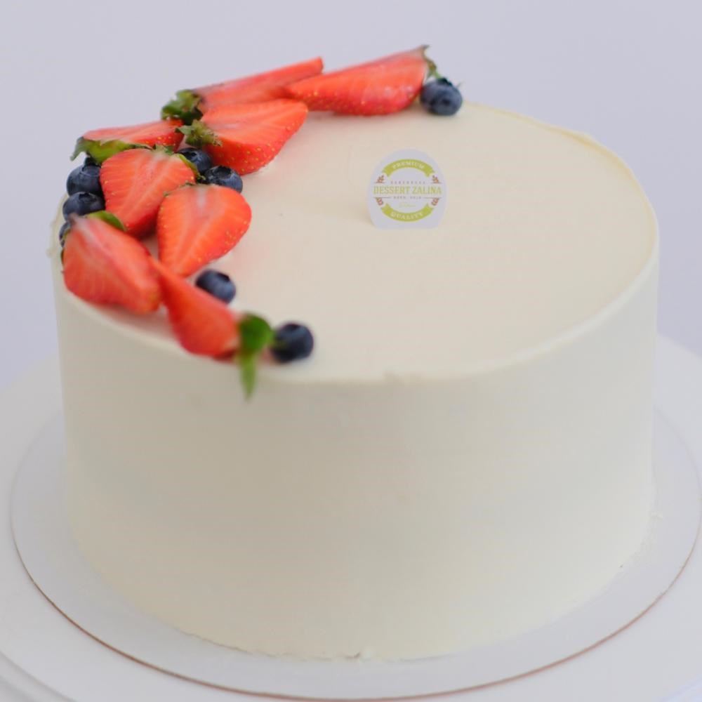 Воздушный бисквит, крем чиз, в прослойке банан и малина