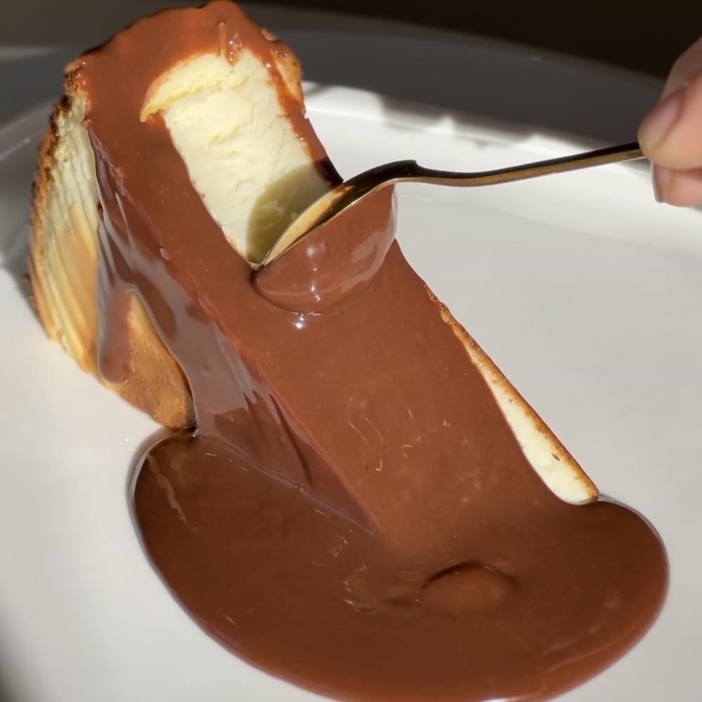 Чизкейк на основе творожной массы, подается с бельгийским шоколадом